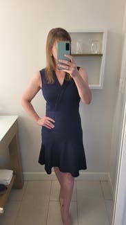 Simple dress that I wore to work. Was comfortable and a good petite friendly length. Not terribly flattering around the belly, but it’s okay overall.