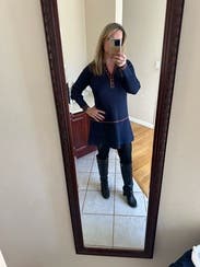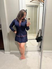 Cute! Was a bit loose and flowy (which made it forgiving!) rather than fitted. You could size down if you wanted it more snug. But I loved the look. So great for fall.