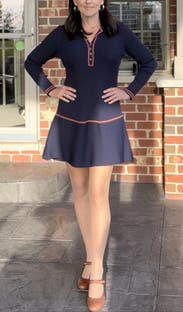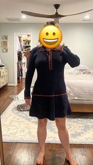 Great dress. Flattering, comfortable, conservative without being stuffy. Wore it with riding boots on a crisp fall day. I’m a 10/12 and the XL fit well