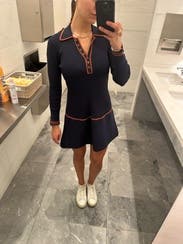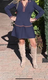 One of the best things I've rented this year! Got soooo many compliments. I sized down for a more flattering fit and I was so glad I did. Shoes were hard but I ended up getting a pair of brown boots to match. It looked great with a belt to cinch in the waist for a party, and it was modest/long enough to wear to work, too. Shoshanna never fails!!!