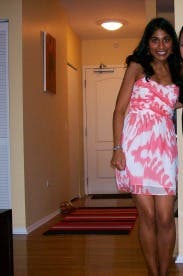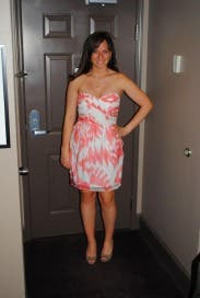 I LOVED wearing this dress. It was perfect for a brunch the day following a wedding. I have olivey skin and was a little tan, so the coral and white looked great against that. I wore my own turquoise stone earrings and they popped against the bright colors. My boyfriend and several people said it was great. I wore the 10 because I wanted to loose on my hips. The top was a little looser than I would have liked, but I didn't have any problems keeping it up.