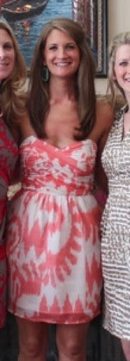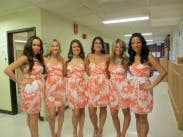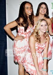 Six of us rented this dress for our school auction, as we were the "Vanna Whites" to display auction items and sell raffle tickets. The dress worked for all of our different coloring and body types. We all loved the fact that the dress had pockets! My dress fit really well around the waist, but was a little big in the bust area, but I'm pretty flat chested so I expected that. The other girls filled out the top nicely and looked great. We got compliments on the dresses all night! I am second from the left in the pictures.