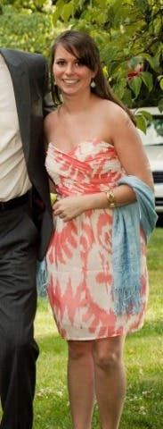 Thanks to Shoshanna, I can wear strapless dresses again. As a busty girl, it's difficult to find strapless dresses that either provide support or that can be worn with supportive undergarments. This dresses is lightweight (perfect for an outdoor wedding in Texas in June) and supportive enough that I never had to tug on or pull up the dress. I love the ikat pattern... very trendy right now.