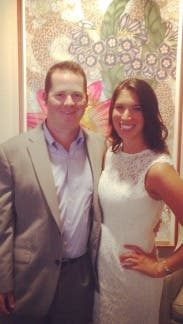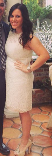 This dress was perfect for my wedding rehearsal and dinner. I had originally planned to make this my "party" dress at the wedding reception, but when it arrived I realized that the straight skirt wasn't very conducive to dancing. I ordered this dress in a 2 & 4. The 2 fit very nicely, but the 4 had a little more breathing room, so I opted for that one, as we were serving italian food (carb-loading ;)) at the rehearsal dinner. I felt amazing in it, and received many compliments! I wore this dress with the Ben Amun love letter earrings and it was a great combination. Thank you Rent the Runway!