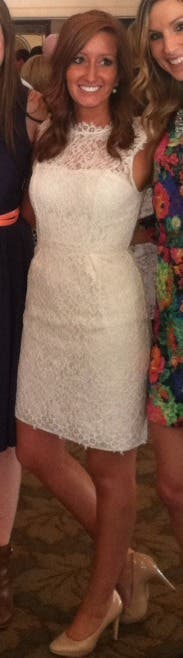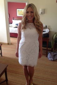 This dress was amazing- even better than I expected it to be. Both sizes I ordered (4 & 6) fit very well and I actually wore them both, the 4 for the ceremony and the 6 out to dinner that night. I got so many compliments and felt like such a bride. I would recommend this dress to anyone looking for the perfect wedding dress to feel beautiful and elegant. It was both sexy and sophisticated - long enough almost to my knees and covered up top but sheer enough to feel pretty. I am 5'10, 133 pounds and fit great. Will definitely be renting from rent the runway again. The whole experience could not have gone any better!! Thanks rtr!!