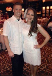 My eyes are closed, but this is the best picture I have of my dresses. It was so beautiful and fit perfect. RTR sent me this because the other one I rented didn't fit. Fabulous customer service, as always. I thought it was true to size, but maybe size down for the backup dress if you're short.