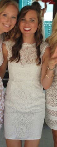 This dress could not have been more perfect for my wedding rehearsal and rehearsal dinner. The lace was gorgeous and the fit was beautiful. The only complaint I have is that the under layer of the dress was a little longer than the top layer of lace so you couldn't see the scallop lace on the bottom very well. I ordered two sizes and this happened on both of them. I also think this dress runs a little large, but most Shoshanna dresses do, so I would recommend sizing down for your backup size. If you're thinking about renting this dress, DO IT! You will not regret it!