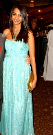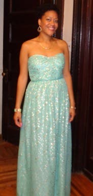 The dress was a gorgeous mint color which is so in right now! I got compliments the whole night and the gold detailing was just enough to jazz up the gown for the event. I did notice the top falling a bit throughout the night but that may have been my fault for assuming I could go braless. Definitely a great dress!
