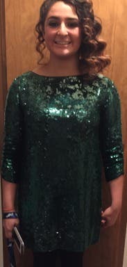 This was a beautiful dress- great deep green color and boxy fit, great for dancing! I usually wear a 6 but I could have worn a 4. The length was not short at all on me (even in heels) and I have long legs. It was not as short as I thought it would be from reading the other reviews. I wore this for New Years and I got a lot of compliments on it. I would definitely recommend renting this dress and getting your normal size along with a size smaller.