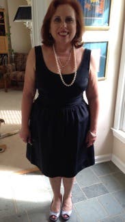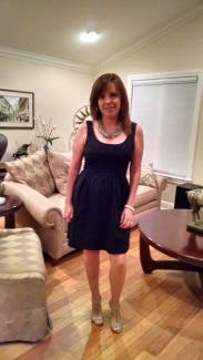 I had just had minor surgery and was not in a place where Spanx would work and this dress was very comfortable without Spanx as it was fitted to just under my ribcage, then came out. I am a solid 6 on the bottom but either a 6 or 8 on the top and I really needed the 8 in this dress, however the bottom was quite loose and literally any size would have worked. So I would say go for the size you need on top. The length was perfect for me. Hits about 2 or 3 inches above the knee. Felt a little breezy in the back due to the loose cut, but I am pretty sure nothing hung out! I felt like the straps were a little long for my torso, but I could wear a normal bra (YAY!) and it had those bra strap clips so it didn't feel uncomfortable once I was fully assembled. As far as style goes, it is a fairly understated and plain dress, although the fabric was really high quality. I was wearing it to an evening, semi-formal event at my daughter's school and it worked well for that, but it was not flashy at all. It would have looked cute with a blingy belt, but I didn't have one or feel like shopping for one. Or you could get away with a GIANT necklace with this dress. If you have a great figure or are good at rocking the Spanx, this dress might feel a bit "boxy" to you. I didn't think it was the hottest dress I have ever worn but it was elegant. I would rent it again, but probably as a back up dress to give something more fabulous a try. This was my first RTR rental and it was a breeze. Came on time, dresses were clean and ready to go, easy to return.