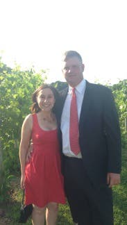 The dress was form fitting on top and forgiving on the bottom! The color was beautiful. Perfect dress for a summer wedding at a vineyard!
