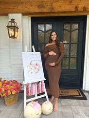 I wore this dress at 25 weeks pregnant (142 pounds) and ordered 2 sizes up and it fit perfectly and was very comfortable. I received many compliments.