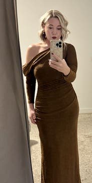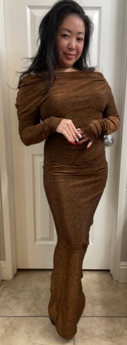 got so many compliments on this dress — flattering, hits in the right spots, and a gorgeous, subtle shimmer. great for formal events!