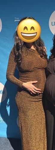 I wish I would’ve gotten better or more photos in the dress. The photo at the event was at the end of the night when it was dark. Would’ve been great to photograph in daylight so you could see how shimmery it really is! So many compliments and I felt great in it. Was able to wear a size smaller than usual (aus size 12, us 8) as it is so stretchy but shoulder does tend to drape a little too much throughout the night.