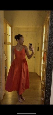 Pics not great but I loved this! Snatched waist and fit great. Only downside was the straps criss crossed in the back - they looked great but didn’t stay taut. I ended up wearing with a cardigan because it was cool outside, but not sure how it would work in summer. May have got a glimpse of side boob 😅