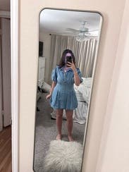 This dress is kinda dumb Like its denim but its not I looked like little Bo peep or Justin and Brittney circa 2000s