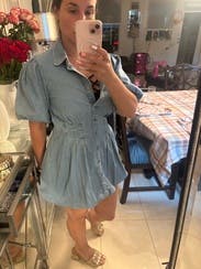This dress looked cute on others in the photos but it looked like a denim clown suit on me. It was not flattering at all! Maybe better on someone taller with longer limbs but the skirt would be extremely short so not sure what body type would wear it best. Also, it was very difficult to put on/take off despite the zipper on the side. Unfortunately, never wore it.