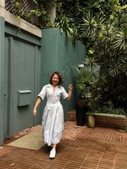 This dress is made of a thick fabric, similar to a windbreaker (water-resistant, too), and it’s a bit heavy for a hot day. The silhouette felt a little overwhelming for my height; the skirt is very wide, which is even more prominent due to the thick fabric. I didn’t think it was very flattering on me, but I actually got a lot of compliments.