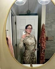 There was something lacking, just an oomph I’d hoped for that I just didn’t get from this dress…. That said, it was brand new so in great shape. It’s pretty but maybe I wanted a little more vavavoom…. The color was kind of drab. I truly liked it, but I didn’t loooove it, so back it goes to some who really loves it!!!