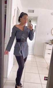 I wore to NYFW. Looks better with a belt. It was a great spin on a normal blazer. Highly recommend. Note: buttons need to be replaced.