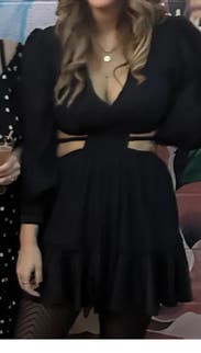 Wore this for a date night with my man and we both loved it!! Loved how it showed off the legs but long sleeves and material made it a more classy look! The back straps were tight but stretchy so if I were self conscious about my back I would not wear. Such a cute rental! Wish I had a full outfit pic, but wore with hot pin Loubatins and a black clutch