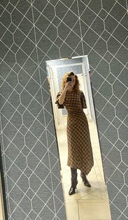 This dress fit well - the waist is super snatched and the pleats/folds are so flattering! The print is fun but since it's neutral it doesn't feel too busy. It's a versatile piece and you could wear this with a lot of different shoes/boots and accessories. I definitely plan to rent this again!
