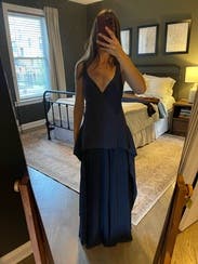 This was a cute dress but not super for me. It was tight on the boobs and straps, but it would’ve still been wearable for the event! Made my hips look a little wide I think but was super flowy on the pleated part which was fun! Ended up wearing a dif dress I rented!