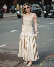 A classic Simhkai dress - upscale casual, can be dressed up or down and super versatile. The prettiest shade of cream, ideal for summer or early fall paired with a sweater and boots.