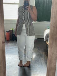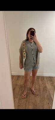 All around winner here. I rented the shorts but they were not flattering and overall the pattern felt like too much on my frame, but I will definitely be renting the top again! Looked great with white pants as well