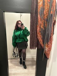 This sweater gives Halloween and Wicked vibes! It’s big though! I got a small and had PLENTY of room. I normally a size 8 and wear a M/L.