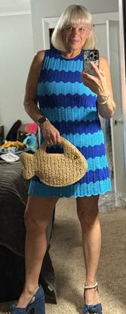 Sized up for length—perfect fit! Love how versatile it is, from beach cover-up to date night. The crocheted feel is beautiful.