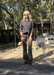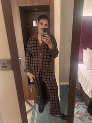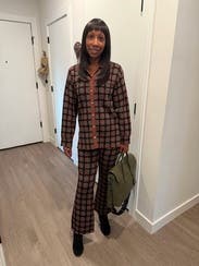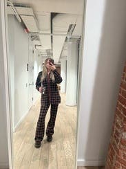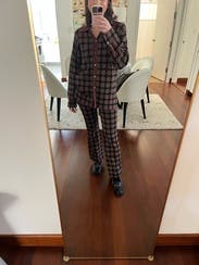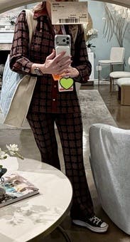 Simon Miller pants (size M) — loved the pattern and fit through the waist/hip, but the inseam ran short on me (I’m 5’8”). This surprised me since the red set from the same designer fit longer. I’d still rent it again — the print has that perfect retro-meets-modern energy — but I would probably style it with a different shoe next time.