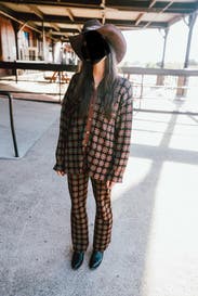 The SIMONMILLER Whitsett Plaid Pants are a polished, tailored pair of trousers featuring a warm brown plaid pattern and a straight leg fit. Pair these sophisticated pants with a fitted black turtleneck and loafers for a sharp, refined office ensemble.