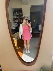 People weren’t kidding, it’s definitely short. However I have a shorter torso so it worked okay for me. The fabric was different than expected but I actually quite like this little dress!