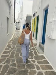 This pant is made of a lightweight fabric that I love. Worn to work with jacket and also on vacation with white platform sneakers
