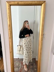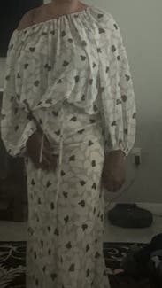 I got so many compliments on this matching set. The skirt was so comfy and fit perfectly. I normally wear a small on the bottom and it was true to size. The print is subtle but very eye catching at the same time. One of my favorite rentals