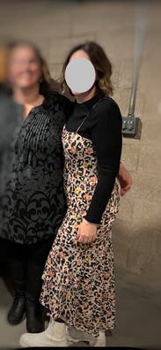 Fun to wear on my birthday. Colder month so styled over a basic black tee, leopard print stockings and white Chelsea boots, then a black motorcycle jacket. Not sure I would have love it by itself but this was fun!