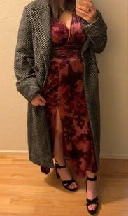 Wore to my niece baptism !! So many compliments and very flattering. It’s a heavy dress so perfect for colder weather. My sister in the pic also rented hers! Great finds