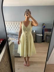 i really liked this dress :) it’s a very pretty shade of yellow, felt flattering, has pockets and was overall pretty comfortable!