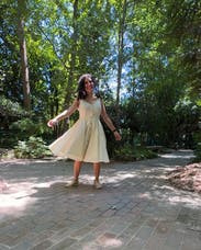 This yellow dress was so fun and flirty. I wore to a tea party in New Orleans during the summer. So comfortable to walk around the city in! It’s not see-through as it has a slip/lined underneath. Such a pretty yellow and perfect for a sunny day!! (I’m all the way on the left in the photo)