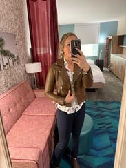 Wore this jacket to go wine tasting in Nashville, and it was comfortable to wear all day for a day out on the town.