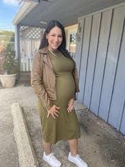 Wore while pregnant. Couldn’t zip it obviously but still cute