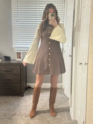 Love a bell sleeve! This would have been cute on it’s own but I loved throwing it under a dress I had to really complete the outfit. Could easily pair with so many different bottoms