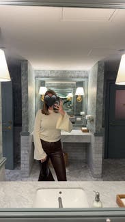 Fun bell sleeve sweater. The fabric isn’t the softest and fits a little snug but overall no complaints!