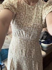 Rented this dress thinking it was flowers and ended up being little dogs. Cute material and brand new but I'm not a wiener dog fan sooo
