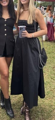 Wore this to a welcome party for a wedding. Simple black dress, but the open back is stunning. Length is perfect for petite girlies. Would rent again