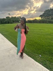 When I saw this on the app I knew I wanted to wear it on my bachelorette trip to Puerto Rico. It was perfect - Very fun, colorful and true to size.