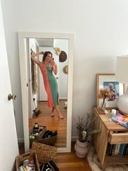 This was one of the cooler dresses I’ve worn! It hugs the body just right and was so comfy. Fun colors too!! Loved for vacation.