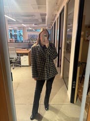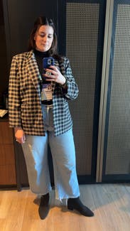 This was a perfect blazer to wear during fall. I wore it at work and on the weekends. It was perfect to dress up and down. It fit me perfectly and made my shoulders look impressive with the shoulder pads.