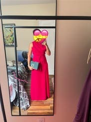 The bag is beautiful and spacious, perfectly matching the dress. Its color and details are stunning, making it a potential statement piece. Has plenty of space to fit everything you need.